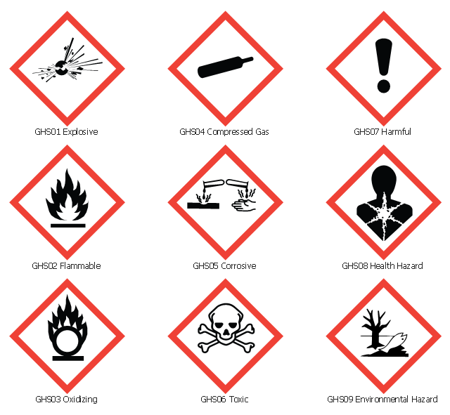 Ghs Label Elements Hazard Pictograms : The Ghs Hazard Pictograms For Free Download / In 2012, osha revised its hazard communication standards to align with the globally harmonized system of classification and labelling of chemicals (ghs).. Signal words ensure ghs chemical labels indicate the relative severity of the hazard. If your substance or mixture is not classified hazardous under ghs, then there is no need to provide signal word, pictogram, hazard statements and precautionary statements. The core elements of a ghs label include product identifier, supplier identification info, signal word, pictogram, hazard statements and precautionary statements. Since this system is used around the world, it was important to use the images rather than words, which would cause difficulty due to language barriers. Ghs hazard pictograms solution contains the set of predesigned standard ghs pictograms, hazardous symbols, and hazard communication pictograms, approved and agreed by un in globally harmonized system of classification and labelling of chemicals (ghs).
